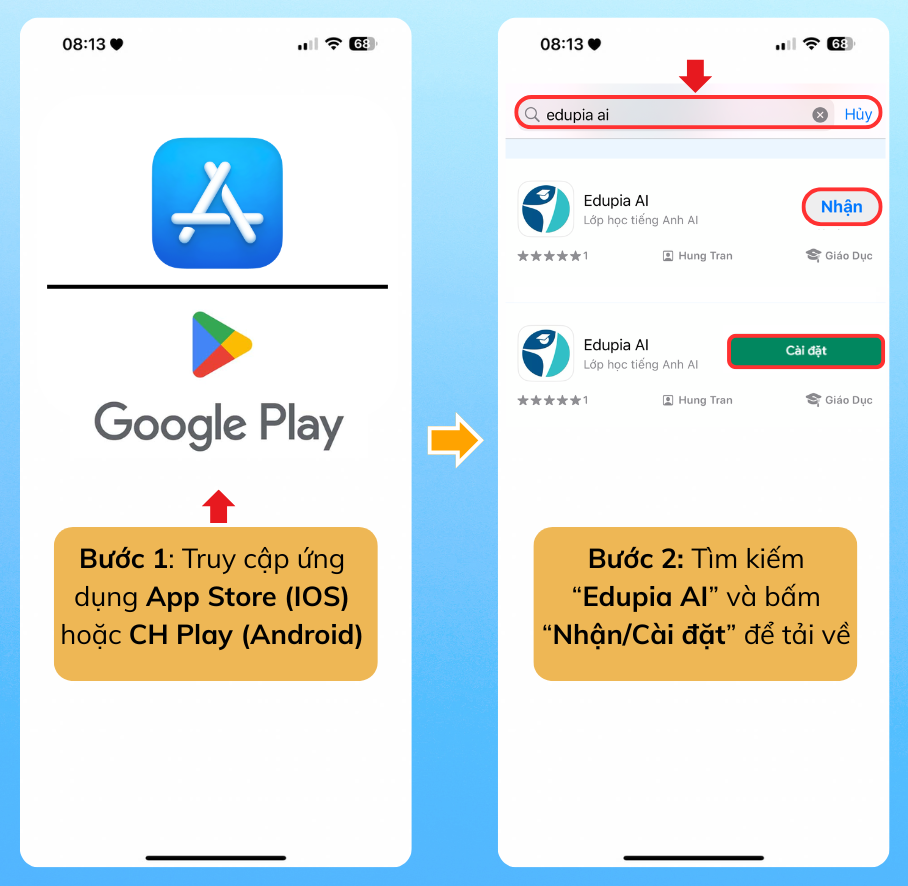 1. Hướng dẫn tải ứng dụng EDUPIA AI CLASS trên điện thoại