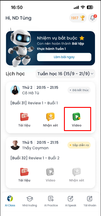 1. XEM LẠI BÀI GIẢNG TRÊN ỨNG DỤNG EDUPIA AI CLASS